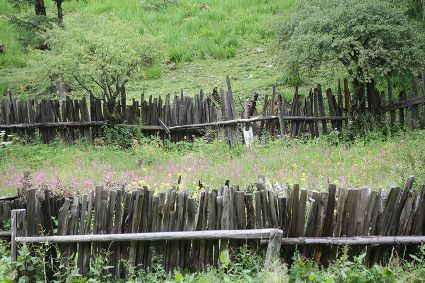 隨著海拔高度的升高與緯度的增加,一路上的植被類型也在不斷發(fā)生著變化。穿越深闊的暗針葉林,六匹馬起起落落的腳力踩出了一個(gè)馬幫的回音,所有的植物在各自的生命活動(dòng)中散發(fā)出了清新怡人的芬多精,吉美為此小聲哼唱起了愉悅的歌兒,細(xì)聽卻又像是兩只云雀在不遠(yuǎn)處鳴囀。再往上走,周遭的林木又轉(zhuǎn)換成了密致的高山杜鵑林,無數(shù)修長(zhǎng)的木流蘇垂掛在樹枝上,像哈達(dá)。一路沉默的南杰轉(zhuǎn)頭來開始與我說話“六月間,這里的每一棵樹都開滿了粉白的花朵,一樹樹的煞是壯觀好看,我一個(gè)人經(jīng)過,總能聽到一朵、兩朵花鈍落的聲音。最初,我以為是馬雞飛落了,輕聲走入林中打探,身后又會(huì)落下一朵、兩朵花,那聲音厚重沉實(shí),林中又過于安靜,我就慌忙走出了林子......”南杰說話聲音秀氣,我聽得時(shí)斷時(shí)續(xù),過風(fēng)吹送著南杰話語中杜鵑花的香氣。前路逐漸敞亮起來的時(shí)候,路邊的杜鵑樹開始變得稀稀落落了,只見路旁堆壘著高高低低的新鮮柴垛。再往上就沒有樹木了,只有矮腳盤香和淺草,路邊的山包上緊貼著密密麻麻的貌似多肉植物的草葉,從草心抽出來一枝枝薔薇紅的花柱在風(fēng)中頻頻點(diǎn)頭。雍貝在前方的馬匹上頭低得越來越沉,以為他瞌睡,我喊了聲貝,他回頭看我,面色灰白嘴唇有些發(fā)紫。南杰回望我們后一躍下馬,從路邊的淺草中折斷幾根盤香枝別在雍貝的耳際,說是可以抵御高反。剩余的兩根遞給我,細(xì)小的枝葉上積著一層薄薄地灰色粉塵,深嗅有松脂的清香氣味,安人心神。