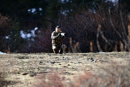 4月16日,筆者在康定市雅拉鄉(xiāng)境內(nèi),再次拍攝到國(guó)家二級(jí)保護(hù)動(dòng)物白腹錦雞求偶的清晰視頻。一只色彩斑斕的雄鳥,拖著黑白相間的云狀斑紋尾羽,圍著雌鳥跳起了“圓舞曲”。整個(gè)求偶過程有十多分鐘。每年三至五月是白腹錦雞求偶期。