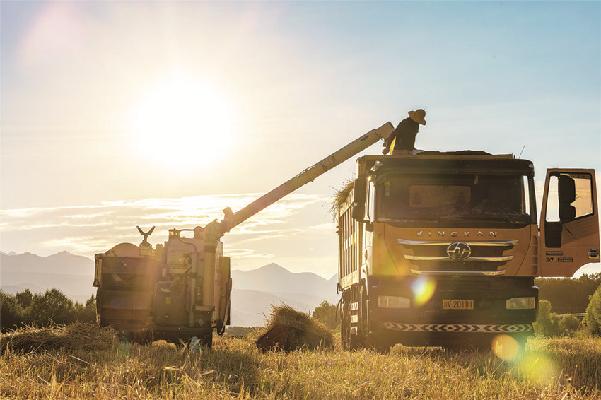 甘孜縣是我州的農(nóng)業(yè)大縣,也是全國(guó)青稞商品糧基地之一,素有“康北糧倉(cāng)”的美譽(yù)。日前,在甘孜縣仁果鄉(xiāng)青稞收割現(xiàn)場(chǎng),一望無垠的田地里麥浪滾滾、麥香四溢,一臺(tái)臺(tái)聯(lián)合收割機(jī)在金色的青稞地里來回馳騁,時(shí)不時(shí)停下來“吐出”金燦燦的青稞,農(nóng)戶們的臉上露出豐收的喜悅笑容。