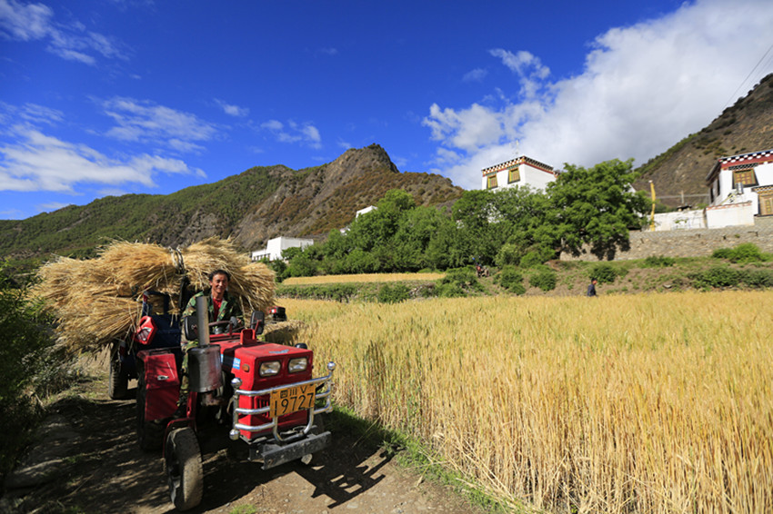 風吹麥田千層浪,麥穗飄香農(nóng)家忙。夏至已到,我州巴塘、鄉(xiāng)城、丹巴等地的小麥陸續(xù)進入成熟期。小麥陸續(xù)開鐮收割,廣大農(nóng)民群眾搶抓天氣晴好的有利時機,加緊搶收小麥,確保夏糧豐收、顆粒歸倉。