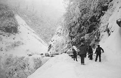 一九九七年十一月二十四日,連續(xù)多日大雪,把整個二郎山裹得嚴(yán)嚴(yán)實實,白茫茫一片。陣陣山風(fēng)吹過,大霧就像瀑布一樣,從山頂直往下翻涌傾瀉。 一大早,州交通局打冰除雪排險的干部職工就從二郎山管理站直奔山埡口。載有防滑砂的大貨車穿迷霧,繞山梁,向山頂埡口疾馳。由于氣溫太低,霧又大,車上的擋風(fēng)玻璃很快就結(jié)下了冰,路面打滑非常嚴(yán)重。前面車輛堵了起來,排險人員只好下車步行。 大霧彌漫,能見度很底,陰霾的天空又飄起了紛紛揚揚的雪花,剌骨的寒風(fēng)陣陣襲來,只聽見車蓬布在風(fēng)中“嗶剝”作響,卻看不見前面到底堵了多少車。排險人員只好相互攙扶踩著冰滑的邊路艱難地向行。好不容易來到堵在最前面的車子面前。原來是一輛載著原木的東風(fēng)牌大貨車側(cè)滑在公路上,把整個公路堵死了。 局領(lǐng)導(dǎo)當(dāng)即指揮大家用鋼釬、鐵鎬和鋤頭處理冰道,沒有撮箕,大家借來加水桶裝運冰雪……氣溫仍在急劇下降,剛從雪堆里刨出來的路,又被結(jié)起一層冰,就像地面上澆上了油,這就是冰雪道上有名的“桐油凌”。 有二位老同志不顧年老體弱,積極參與打冰除雪,一個在打冰時,被彈起的冰碴把腦門劃了一個口子,鮮血直往外冒。有人想幫他包扎,他堅決不干,自己就用手帕按住,把帽子向下拉蓋住傷口就算了。血從手帕中浸透出來,與眉毛上的冰凌結(jié)在一起。氣溫太低,冰層太厚,十字鎬每挖一下,多數(shù)情況下也就是挖下一個白點而已。不一會兒,另一位老同志已是滿頭大汗,大家勸他休息一下,他卻說:趁著現(xiàn)在雪不是太大,早點把主道上的冰雪多除點,過往二郎山的車輛就多一份安全。 排險人員的手凍紅了,刨冰雪碰傷的指頭還流著鮮血,身上蒸發(fā)的熱氣,把衣領(lǐng)口、袖子口和褲子口結(jié)成了冰,可是,誰也沒有吭一聲。 ……受堵車輛終于向前開動了。 風(fēng),越刮越猛,雪,越來越大。 防滑車在冰雪道上艱難地向前爬行著,車箱上面的職工們揮舞的洋鏟向路面撒著防滑砂。一路上風(fēng)絞雪,防滑車象一頭不聽使喚的牛,顛簸、亂竄,好不容易才來到260(二郎山最險處),對這里“桐油凌”路面進行重點防滑處理后,防滑車又返回來,開始向山頂進發(fā)……風(fēng)雪二郎山上打冰除雪、防滑排險,看似沒有驚天動地的壯舉,身臨其景才知其艱難辛苦。難怪當(dāng)年每每經(jīng)過二郎山冰天雪地奇險路段的車,都會向風(fēng)雪中屹立路邊的交通系統(tǒng)排險保暢通的職工們鳴笛致敬,風(fēng)雪中的那份情彌足珍貴。 川藏線上的老司機傳下來一首傷心的順口溜:“車過二郎山,如闖鬼門關(guān),萬幸不翻車,也要凍三天!”其險峻實為罕見,尤其是途經(jīng)二郎山260(公路公樁)處,曾被淡虎色變的人稱為“鬼招手”的險路段。 1983年1月3日,有著安全行車44萬公里記錄的一位駕駛員開著輛嶄新的東風(fēng)牌貨車,同行還有兩名職工,夜行二郎山,在彌天大霧中神秘地“失蹤”了。十五天后,搜山的人才用望遠(yuǎn)鏡看到260公里路樁處的山崖下,有一塊汽車破篷布掛在樹枝,猶如招魂的凄厲幌幡在冷風(fēng)中招搖晃動。鋼纜繩吊著搜山的人下到崖下400米深處的谷底。扒開一座座雪堆,叫人汗毛倒豎:雪堆下,盡是廢大梁、爛車廂、銹車頭和支離破碎的汽車,足有一個汽車連!一輛不知埋了多久的卡車廂里牛肉已腐爛,駕駛室里坐著三具發(fā)黑的僵尸……其狀慘不忍睹!