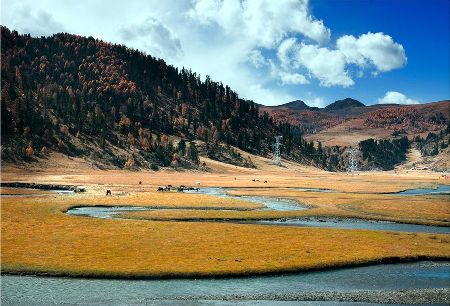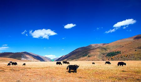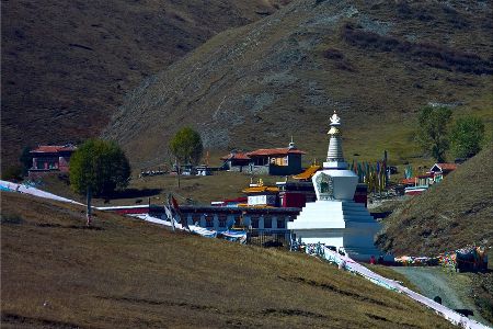 “塔公”,藏語意為“菩薩喜歡的地方”。相傳文成公主進藏時,途經此地,隨身攜帶的釋迦牟尼佛像忽然開口,示意愿留在此地。眾人立即就地按照佛像原貌復制一尊留下。從此,高原上有了被稱為“小大昭寺”的塔公寺。塔公草原也因此而得名。自康定沿川藏線西行,翻越折多山,過新都橋后北行不多時便是塔公了。沿線的河流、草原、森林、山體、寺廟、藏寨構成了濃郁的甘藏風情。高聳的雅拉雪山、起伏的草原、成群的牛羊和草原上金碧輝煌的“木雅經塔”讓人留連忘返。