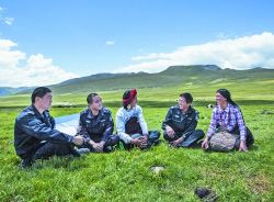 新龍縣拉日馬牧區(qū)派出所,地處海拔3768米的山塬草地,全所干警7人,負(fù)責(zé)管理方圓1527.19平方公里內(nèi)7個(gè)行政牧村、53個(gè)牧業(yè)小組、1269戶共計(jì)5600多人的治安秩序。這里遠(yuǎn)離縣城,卻和周邊理塘、雅江、道孚三縣牧區(qū)相接,社會(huì)狀況復(fù)雜、自然環(huán)境惡劣,轄區(qū)內(nèi)大多數(shù)牧場(chǎng)靠騎馬、步行跋涉才能到達(dá)。多年來(lái),全所干警以艱苦為榮,與牧民一家親,并用實(shí)實(shí)在在的工作業(yè)績(jī),徹底改變了過(guò)去突出存在的打架斗毆、交通混亂和治安案件時(shí)發(fā)等問(wèn)題。牧區(qū)的和諧穩(wěn)定,牧民的安居樂(lè)業(yè),贏得了牧民群眾的交口稱贊。(紫夫/文 扎西澤仁/圖)