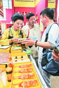 記者在首個(gè)公眾開放日當(dāng)天的甘孜展館看到,我州8個(gè)名優(yōu)特色產(chǎn)品的展位前,人流如潮?;蛸?gòu)買,或品嘗,或填單訂貨,構(gòu)成了激動(dòng)人心的一幕。和絕大多數(shù)觀眾一樣,一走進(jìn)甘孜展館,美國(guó)游客尼爾就對(duì)這些名優(yōu)產(chǎn)品贊不絕口,吸引他的不僅有甘孜水淘糌粑、爐霍雪域俄色茶,還有高原名貴藥材制品、高原牦牛肉制品等。
