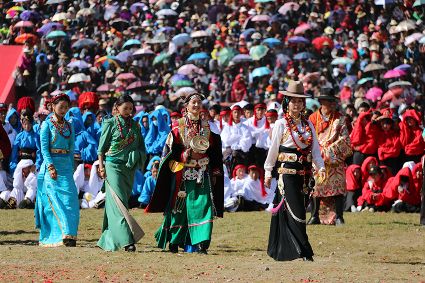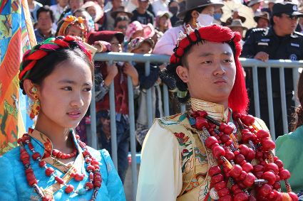 于是,年復(fù)一年,“漢子”與“花”兒們便挺拔、綻放在漢語表達(dá)的一個極點之上,被玄想,被渴望。對遠(yuǎn)道而來的人們或是世代居于高原的子民而言,康巴漢子與康巴之花不僅僅是美的化身,通過康巴漢子與康巴之花的評比,人們在尋找一個早已失落卻又天然渾成的世界。
