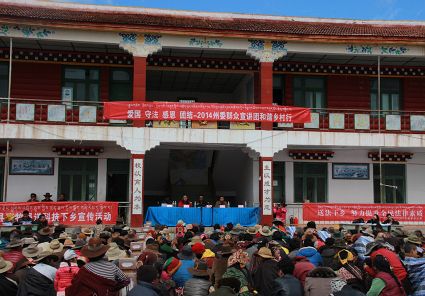 在此次宣講活動(dòng)中,我州建立了州、縣、鄉(xiāng)、村“四級(jí)”宣講網(wǎng)絡(luò),將群眾宣傳教育與群眾工作全覆蓋、法治甘孜、創(chuàng)建全國民族團(tuán)結(jié)進(jìn)步示范州等活動(dòng)有機(jī)結(jié)合,突出主題宣講,注重特色宣講和典型宣講,創(chuàng)造性地啟用了“草根宣講員”以及面對面“1+N”宣講,派會(huì)當(dāng)?shù)卣Z言的宣講老師進(jìn)行宣講,形成了層次分明、重點(diǎn)突出的立體宣講體系,實(shí)現(xiàn)了從剛性宣教向柔性宣教、從說教向寓教、從蜻蜓點(diǎn)水向潛入內(nèi)心的“三個(gè)轉(zhuǎn)變”。