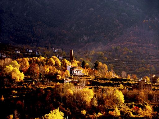 2013年11月,當(dāng)一行影友來(lái)到丹巴中路,璀璨的秋色頓時(shí)迷住了我們。于是,便有了如下這組影像。
