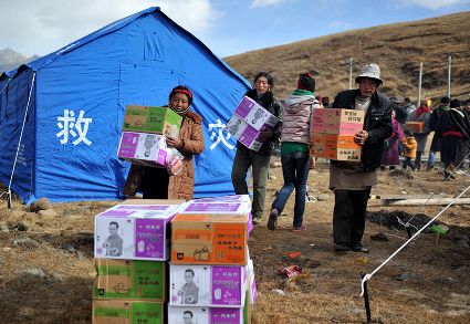 發(fā)放救災物資及災民生活掠影