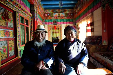2、祖籍山西的張翁登今年74歲,年輕時(shí)來到爐霍縣宜木鄉(xiāng)蝦拉沱村,與藏族姑娘冬花結(jié)婚后,他喜愛種植水果,也熱愛這里的民族文化,一住就是幾十年。他說:“產(chǎn)業(yè)發(fā)展與旅游發(fā)展相結(jié)合,才是老百姓的發(fā)展出路。”