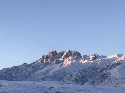 記得,離開甘孜縣城,前往滿金寺的那個早晨。同行的幾個人早早用過了早飯,趁著出發(fā)前僅有的一點時間,站在頂樓視野開闊的餐廳里,盼著太陽沖出來,直接把陽光大把大把地扔在大雪所覆蓋的一切事物上。天公作美,出發(fā)之前,太陽慷慨了一回。于是,一陣噼噼啪啪的快門聲響了起來,應(yīng)和著寥寥餐廳里的某種空白。