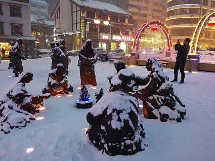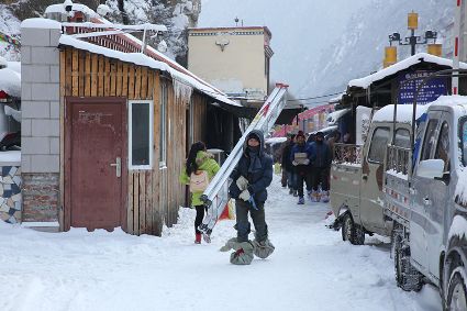 “風(fēng)雨送春歸,飛雪迎春到。已是懸崖百丈冰,猶有花枝俏?!?月4日傍晚,大片大片的雪花,從昏暗的天空中紛紛揚(yáng)揚(yáng)飄落下來。霎時間,山川、河流、城市,全都籠罩在白蒙蒙的大雪之中。黃昏的雪,下得深切切的,好象有千絲萬縷的情緒似的,又像海水一般洶涌,能夠淹沒一切,還有一絲揭開藏頭露尾般的裸露感。雪花形態(tài)萬千、晶瑩透亮,好象出征的戰(zhàn)士,披著銀色的盔甲,又像是一片片白色的戰(zhàn)帆在遠(yuǎn)航…… 落光了葉子的柳樹上,掛滿了毛茸茸、亮晶晶的銀條兒;冬夏常青的松樹和柏樹,堆滿了蓬松松、沉甸甸的雪球。那一片雪花在空中舞動著各種姿勢,或飛翔,或盤旋,或直直地快速墜落,鋪落在地上。“忽如一夜春風(fēng)來,千樹萬樹梨花開”——這是雪的燦爛;一場瑞雪,扮美了康定,年味籠罩的康定城,嫵媚妖嬈。無論是背水姑娘、有著年味兒的將軍橋,還是大紅燈籠高高掛的康定門,都在雪后別有一番景致。與美景合影、和朋友玩雪都是最佳選擇。在風(fēng)雪中,交警不畏嚴(yán)寒默默堅守崗位 ,指揮交通疏堵保暢。他們的身影在皚皚風(fēng)雪路上站成一道道最美的風(fēng)景,溫暖了康定。從早上六點(diǎn)開始,康定的環(huán)衛(wèi)工就迎著刺骨的寒風(fēng),開始了除冰雪保通暢的行動,在積雪覆蓋的康定城,早起的商販樂呵呵地做起了買賣;民工迎著雪后的寒風(fēng)出門務(wù)工,他們是最可敬的人。