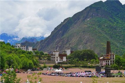 比賽開始不久,現(xiàn)場下起了小雨,但絲毫沒有影響熱烈氣氛。臺上的佳麗們,略施粉黛,穿著承載著嘉絨風情文化的民族盛裝,自我介紹,優(yōu)雅展示。臺下,則是鄉(xiāng)民齊聚,熱情高漲。大家紛紛到場,為佳麗們加油助威。據(jù)介紹,丹巴出美女始于漢代的東女國時期。古時每年農(nóng)作物收獲的時節(jié),丹巴各村各寨都要舉行盛大的選美和祭祀活動。