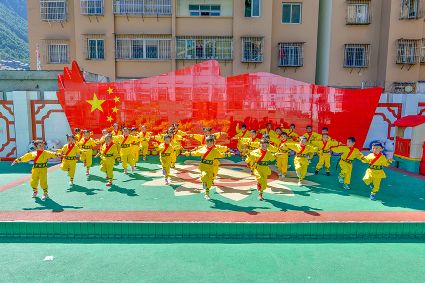 “六一”前夕,我肩挎相機(jī)走進(jìn)了熱鬧非凡的九龍縣二幼,他們正在舉行“我們在一起”文藝活動(dòng)?;顒?dòng)一開始,幾個(gè)四五歲的小小升旗手,身著民族服裝在老師的口令下莊重地走上旗臺,在激昂的國歌聲中,國旗在他們手中冉冉升起,全場行注目禮。這場景令我感動(dòng)不已,國家強(qiáng)盛,人民安康,孩子們在溫暖的陽光下茁壯成長。