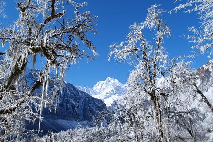 冬季的海螺溝是冬雪仙境、人間至美!海螺溝位于貢嘎雪峰腳下,是“蜀山之王”貢嘎山的門戶,以低海拔現(xiàn)代冰川著稱于世。站在雪后的海螺溝遙望貢嘎神峰,猶如一道冰凝玉砌的天庭界碑,氣勢雄渾直指九霄,雪霧攜祥云共舞峰巔,絕世獨(dú)立的山王風(fēng)范在冰雪仙靈的輔佐下,更顯帝王之氣。