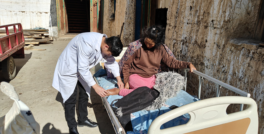 本網訊 3月12日一大早,在鄉(xiāng)城縣然烏鄉(xiāng)衛(wèi)生院,來自云南省迪慶藏族自治州香格里拉市誠德醫(yī)院的羅醫(yī)生正在為殘疾人士進行康復治療。
