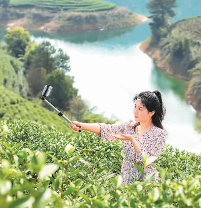 近日,浙江省杭州市淳安縣姜家鎮(zhèn)中心小學(xué)一位語(yǔ)文老師通過(guò)網(wǎng)絡(luò)直播上習(xí)作課,在茶園現(xiàn)場(chǎng)講解和茶有關(guān)的傳統(tǒng)文化。毛勇鋒攝