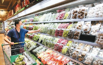 圖為7月9日,消費者在江蘇省連云港市連云區(qū)海棠路一家超市購物。