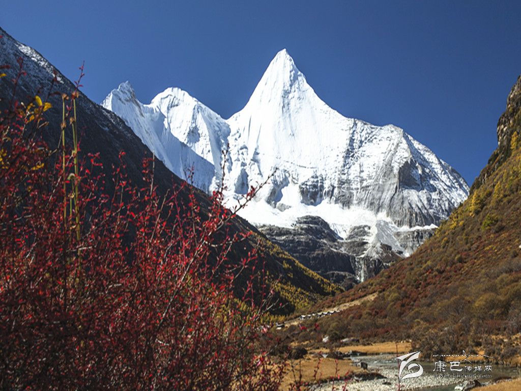 夏諾多吉雪山位于稻城縣與涼山州木里縣的交界處,海拔5958米,是三怙主雪山之一,排行第三。夏諾多吉雪山是“金剛手菩薩”的化身,這是佛教中除暴安良的神祗,它勇猛剛烈,神采奕奕,胯下圍著斑斕的虎皮,腰間纏著大蟒,威武雄壯。夏諾多吉為三怙主雪山的東峰,主峰為三棱錐狀,造型跟金字塔相似。雪山兩翼鋒利似刀,蜿蜒綿亙,在天空中勾勒出的線條尖銳有型。清晨,陽光從夏諾多吉的背后升起,從溝谷中看過去,雪山具有剪影一樣的效果。黃昏是雪山最美的時(shí)候,夕陽從西邊斜斜地照在雪峰上,整個(gè)雪峰沐浴在柔和的陽光中,裸露的巖石和冰雪體被渲染得極為艷麗。