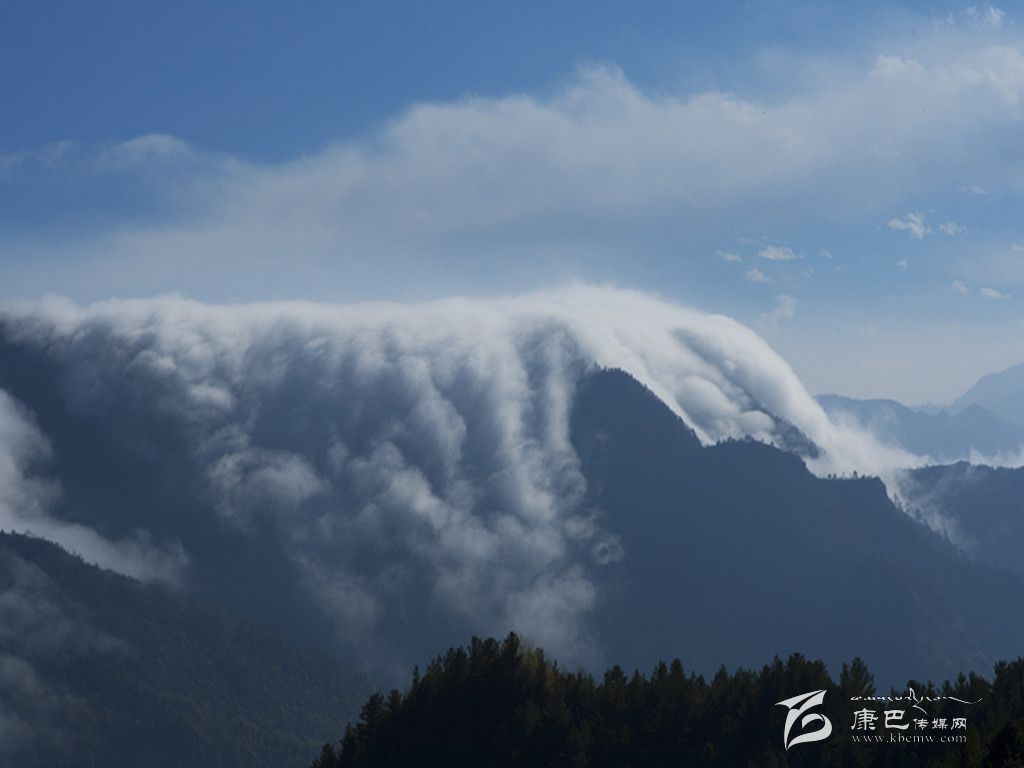 牛背山最為變幻無窮的,當屬云海。從山頂向下望去,四周云海茫茫,時而舒緩,時而洶涌,潮起潮落。當云海移至深谷處,會因為巨大的落差而形成瀑布云,似飛瀑從天而降,氣勢磅礴,蔚為壯觀。“寵辱不驚,閑看庭前花開花落;去留無意,漫隨天外云卷云舒”。云卷云舒的景象,大概只有在牛背山才能被演繹得如此淋漓盡致吧。難怪有人這樣描述牛背山:“泥巴山、瓦屋山、峨眉山、夾金山、四姑娘山和二郎山在前, 貢嘎雪山在側(cè), 大渡河大峽谷在后, 幾乎天府之國的所有名山峻嶺在此時都變成了玲瓏盆景。而翻滾的云霧之下, 群山丘陵逐級降低, 緩緩融入稻浪翻滾的天府平原。”