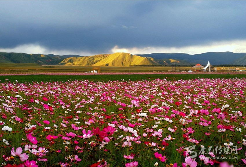 折西萬畝花海是康定市打造的花海景點,景點包括七個點位,每個點位都是由十余種不同顏色花種,打造出各種大型圖案來展示的,游人可在內(nèi)設(shè)的觀景臺、巡護道、觀景石等地進行觀賞拍照。