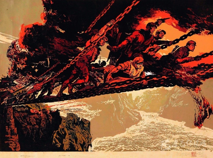 中革軍委于1935年5月26日命令紅一軍團及主力在兩天半內(nèi)向瀘定橋急進。紅一軍團將奪取瀘定橋的任務交給了王開湘、楊成武領導的紅4團。紅4團遂沿著大渡河西岸向瀘定橋一路飛奔,邊走邊打。沿途山路陡峭崎嶇,危機四伏。
