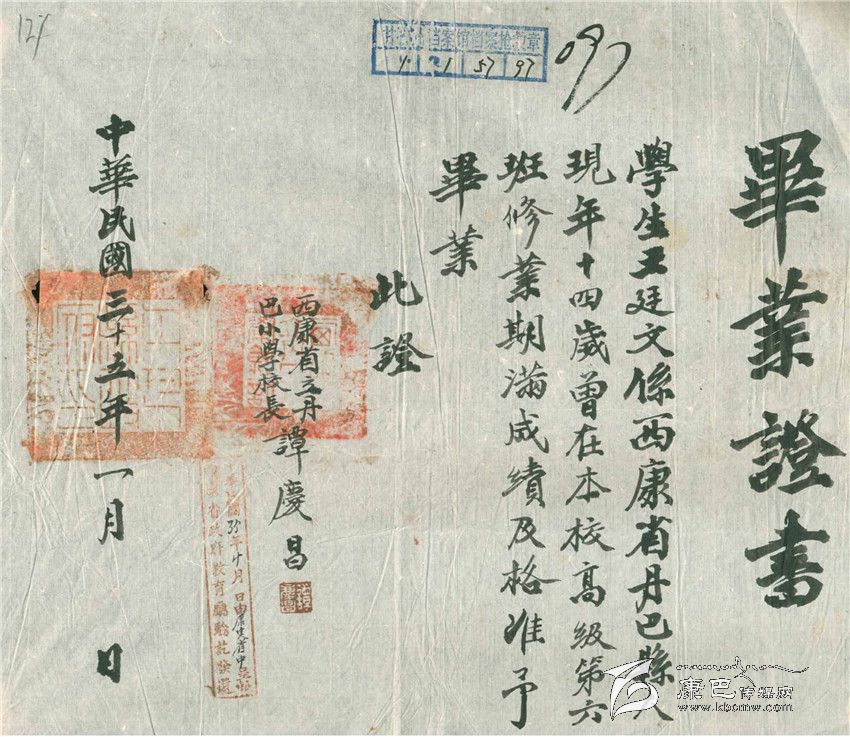 這里的幾份畢業(yè)證書,有由“國(guó)立康定師范學(xué)校”所頒發(fā) 畢業(yè)證,也有由小學(xué)校頒發(fā)的小學(xué)畢業(yè)證。通過這些畢業(yè)證,讓今天的人們也能感受到在那個(gè)時(shí)期,西康地方的學(xué)校教育十分正規(guī),也就是那個(gè)時(shí)期畢業(yè)的許多學(xué)生,成為了新中國(guó)成立后,建設(shè)社會(huì)主義新藏區(qū)的一支重要力量。