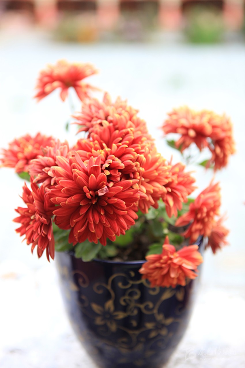 走進南無寺的大四合院,正在群開的花有格?;ā⒋篼惢?、孔雀草、菊花。紹英到大殿參觀的時候,我就湊到四合院庭院邊上的花壇前去拍花了。