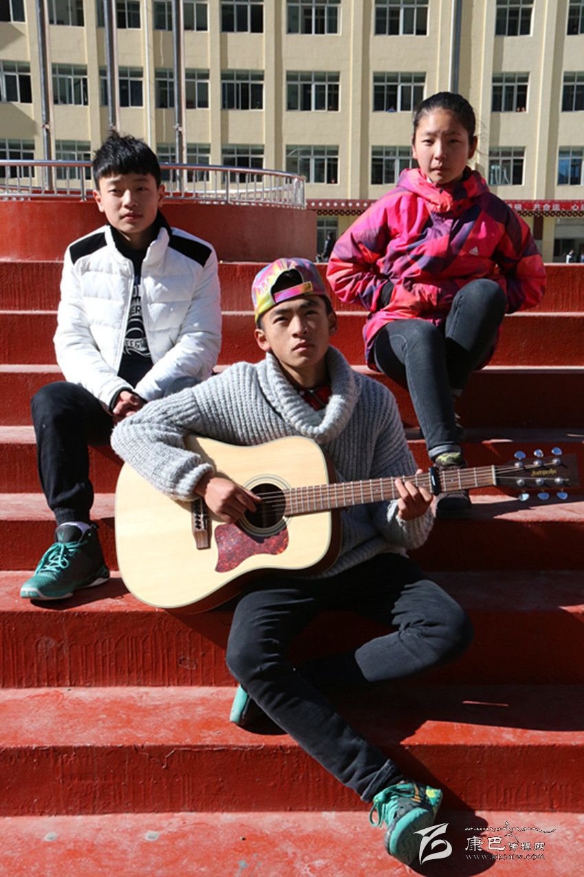 “白云下一座溜溜的城/聽(tīng)著溜溜的歌聲/李家那溜溜的大姐喲/溜溜愛(ài)上藏家大哥喲/尋夢(mèng)在溜溜的跑馬山/我推著金桶溜溜轉(zhuǎn)/折多河溜溜穿城過(guò)喲/頌經(jīng)聲溜溜的傳承喲/悠揚(yáng)琴聲在溜溜小城/我溜溜等待著愛(ài)人/跑馬山龍打溜溜撒喲/心就在溜溜城中活……”最近一首名叫《溜溜》的歌曲刷爆了記者的朋友圈,不到一天的時(shí)間點(diǎn)擊率達(dá)到12000多,干凈的嗓音碰上吉他、貝斯等流行元素,給聽(tīng)眾帶了一種不同的音樂(lè)享受?!读锪铩返脑~曲作者周麒(當(dāng)然他也是原唱之一)和主唱昂汪央金拉姆、周楠都是來(lái)自康定中學(xué)的學(xué)生,在冬日的午后,記者在康定中學(xué)的籃球場(chǎng)見(jiàn)到了這三位一臉天真的原創(chuàng)者。初見(jiàn)記者,他們還有一些靦腆、緊張,但是一談到音樂(lè),他們立刻有了說(shuō)不完的話。