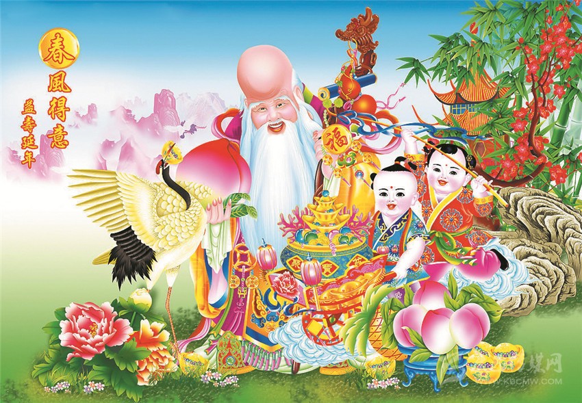 年畫對人作為一個特殊物種的感性、感覺、感官的視覺包圍,是建立在民居、家庭、居室對身體的包圍(物理空間)基礎(chǔ)之上的,也是建立在年畫的張貼對人的精神恐懼的安慰和安撫并使之安寧的精神包圍(文化空間)之中的。這雙重的視覺包圍還包括了一個從物質(zhì)和精神的家園,到對人的出身、成長、成年、老齡、死亡的人生過程的全程包圍和看見。