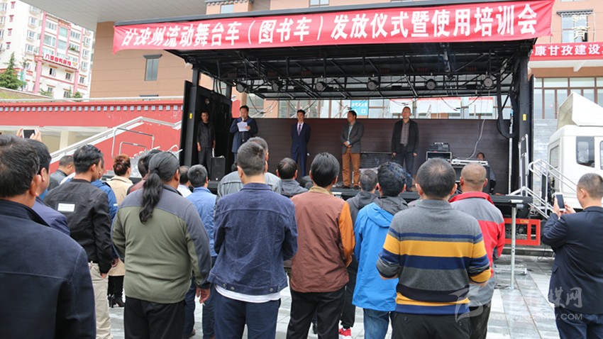 本網(wǎng)訊(記者 宋志勇 文/圖)6月22日,我州流動(dòng)舞臺(tái)車(圖書車)發(fā)放儀式暨使用培訓(xùn)會(huì)在康定舉行,旨在為全州13個(gè)縣(市)及州歌舞團(tuán)、州圖書館統(tǒng)一配發(fā)流動(dòng)舞臺(tái)車、圖書車,著力解決基層群眾看文藝演出難、看圖書難以及文藝表演團(tuán)體下鄉(xiāng)演出搭臺(tái)難、轉(zhuǎn)點(diǎn)難等實(shí)際困難,進(jìn)一步豐富基層農(nóng)牧民群眾文化生活。這是繼全國文化信息資源共享、鄉(xiāng)鎮(zhèn)綜合文化站建設(shè)實(shí)施的又一文化惠民工程。