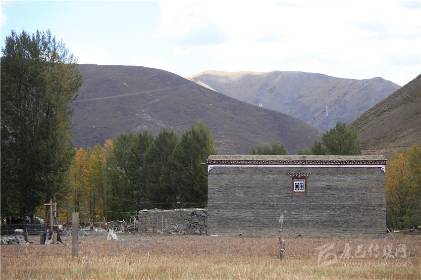 依然在找醒目的彩樹來拍。但更多時候,我拍的卻是那些散發(fā)著寧靜之氣的黑石藏房——它們是我照片中的主景;配景多為白楊樹,無論是否“掛彩”。