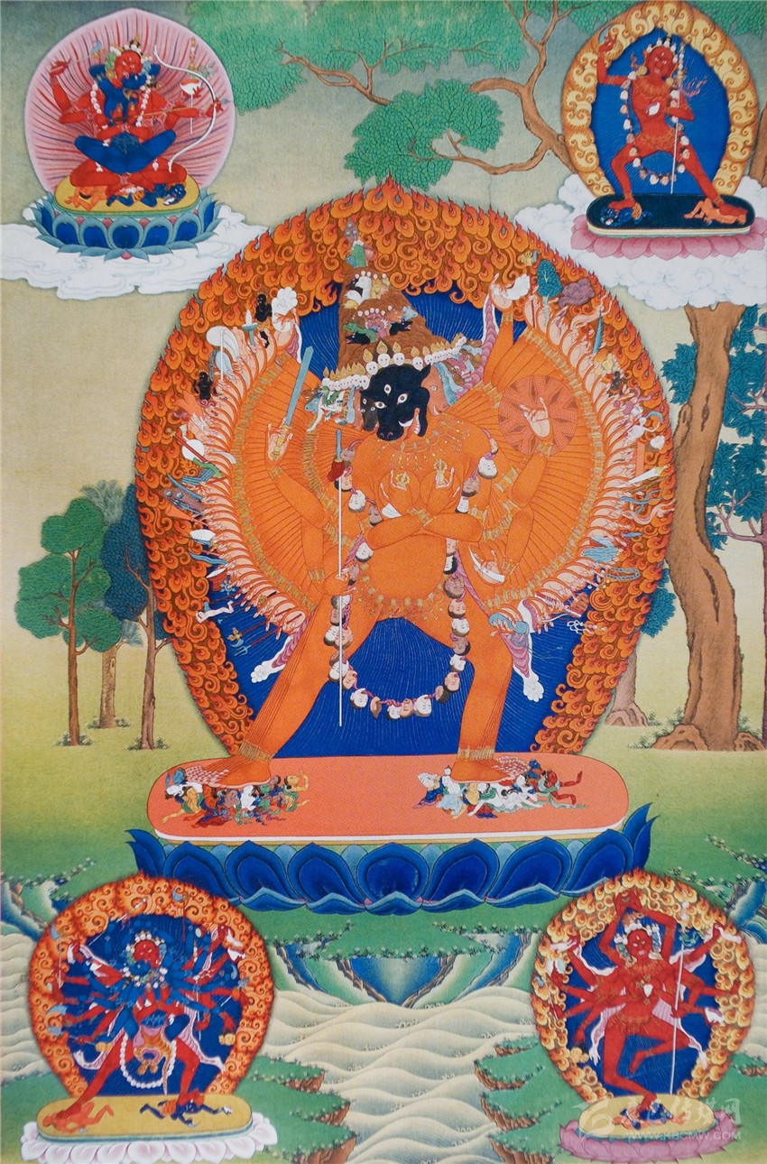 當尼泊爾精致風格的繪畫傳入藏區(qū),通過藏族畫家靜穆的心靈,將粗獷和細膩的相交織,把紅色和綠色共交響,讓嫵媚與莊嚴相融合,形成了具有西藏審美的風格變體。其中,夏魯寺繪畫就是這種典型風格。它有著大面積的色塊對比,又會在局部做精致的裝飾,這正是尼泊爾藝術影響下的西藏繪畫風格。