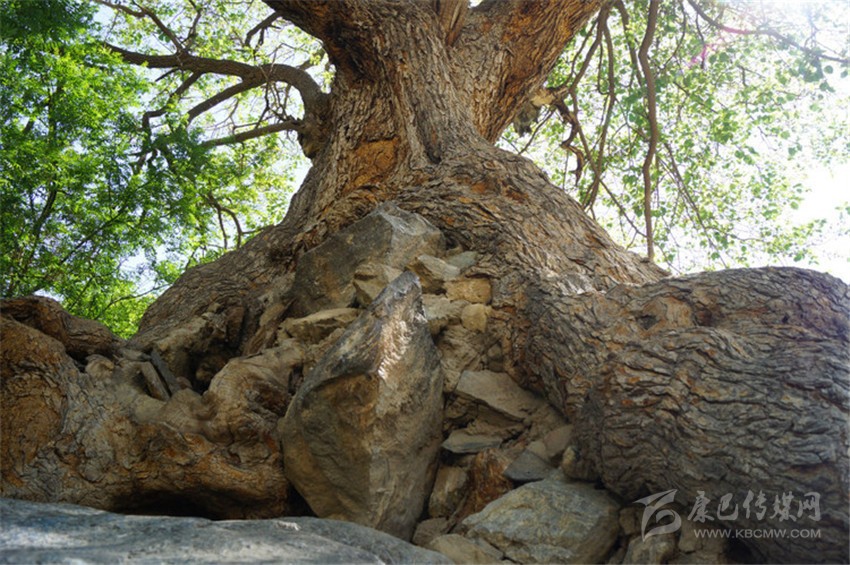 站在藏寨中間,遠遠就可以看見那棵枝繁葉茂的桑樹拔地而起,覆蓋住了幾百平米的大地,近了近了,眼前的樹和石頭清晰的出現(xiàn)在面前,在一塊高約三米的巨石上,長著一株高達10余米的桑樹,樹冠掩映著200多平米的地面。在這棵樹下,能真切的感受到“廳前多古樹,有拏云攫石之勢”之意境。桑樹的主根深入石縫之中,而幾支碗口粗的側(cè)根則在石面上攀爬,將整塊石頭嚴嚴實實地包裹起來,有的側(cè)根直接伸進石塊底部的土地里,而有的側(cè)根則鉆進狹小的石縫中,由于受到石片的擠壓,原本粗壯的樹根呈現(xiàn)扁平狀,一旦脫離了石縫的夾裹,樹根變得遒勁有力,猶如蛟龍出水。這些樹根在巨石上盤根交錯,組成一個整體,就像是一個巨人,盤膝而坐。往上,桑樹枝干與樹根一樣旺盛,黑色的樹皮布滿了裂紋,仿佛是歲月的皺紋。樹干之間有幾個大小不一的樹洞,里面裝填著白色的石塊,據(jù)說,這是信徒們將自己的心愿附注在白石上,希望借助神樹之力送達天庭。再往上,可以看見在枝干上的分叉處,猛地一下涌出許許多多多鮮活的枝葉,透露出綠綠的光芒。越往上,枝椏越密,厚厚的枝葉便疊加在一起,組成綠葉搭建的棚頂。在這高大茂盛的桑樹里,雖然沒有桑椹可食,然而因為有綠葉樹叢的庇護,這里儼然成了鳥雀的天堂,各色鳥雀便棲息在樹枝間,發(fā)出愉悅的歌聲,張開靚麗的羽翅,在樹叢里你追我趕,上下飛舞,對不速之客仿佛并不在意,有時候落下來,在地面上啄食祭祀時所灑落的青稞、麥粒等糧食,接著又撲閃著翅膀飛向樹巔。