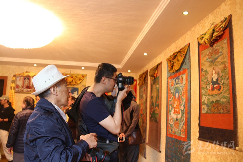 圖為參觀精品唐卡現(xiàn)場(chǎng)。