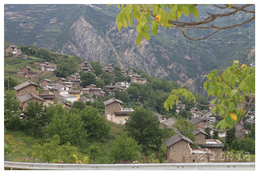 至此,似乎明了:在大渡河的東岸,在南北向布列的橫斷山脈(群)的夾金山系里,照常分布著眾多山的凹槽(山溝)——或深或淺,或?qū)捇蛘?,方向不定;而麥崩鄉(xiāng)所轄的村莊,幾乎都位于山溝兩側(cè)比較平緩的山坡臺地上。比如,昌昌村與對面山上的景點之間,就隔著一條大溝;昌昌村與下火地村之間,也隔著一條大溝;下火地村與景點所在的那座山,也隔著一條大溝了。