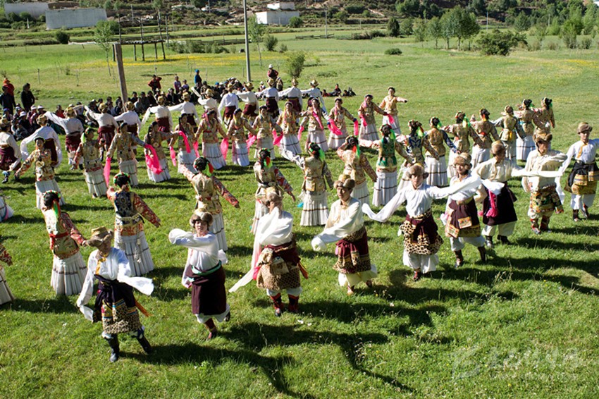 拋開撲朔迷離的傳說,世代居住在康巴南端的得榮人,在勞作之余、逢年過節(jié)、婚姻嫁娶等時機(jī),總會有歌舞伴隨,婦孺老幼都十分喜愛唱歌跳舞,積極踴躍參加,男女青年大都具有吹拉彈唱的本領(lǐng),在長期的生活中孕育了別具一格的民間歌舞“學(xué)羌”,口口相傳、代代融新也是情理之中的事。