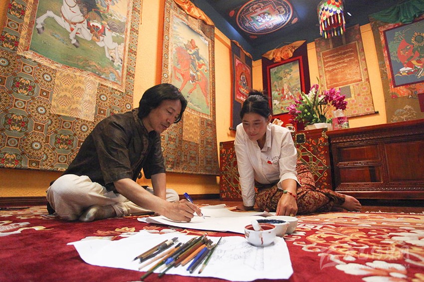 春去秋來,拉孟的畫藝也精進了不少。因為主攻唐卡畫,拉孟有了不少“粉絲”,許多人還專門前來拜師。在拉孟看來,有人學畫唐卡是好事,自己不該破壞這份美好。于是從1998年起,他便開始免費收徒授藝。