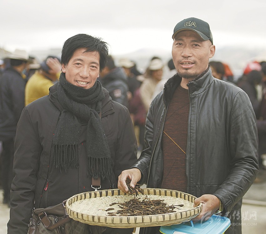 來自拉波鄉(xiāng)的商人曲珠他,在采集點(diǎn)的臨時交易點(diǎn)將斯郎單珍一家采集到的蟲草盡數(shù)收購,運(yùn)送至城區(qū)再次交易。5月5日,攝制組跟隨著這些“還沾著泥土的蟲草”,來到攝制組在理塘縣城東新區(qū)蟲草交易市場,拍攝記錄下2019年“頭草”的交易情況,并捕捉到了藏區(qū)特有的蟲草交易“袖筒議價”場面。