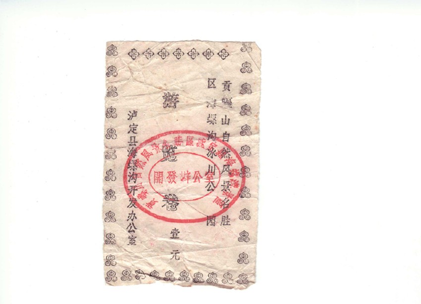 時(shí)間一晃到了7月份,海螺溝達(dá)到了“有節(jié)制接待”條件。在我向?qū)O前匯報(bào)請(qǐng)示,并得到同意后,七月十日將自己構(gòu)思,手工制作的海螺溝“游覽卷”樣卷送孫前過(guò)目,并獲通過(guò)。于是我買來(lái)5色紙,從瀘定縣印刷廠借來(lái)“游覽卷”三個(gè)中號(hào)印刷鉛字釘,指導(dǎo)打字員排版打印在臘紙上。游覽卷分為國(guó)內(nèi)和國(guó)外游客兩種門卷。用白、蘭、綠三色紙油印壹元面值的國(guó)內(nèi)游客門卷;黃、紅二色紙油印貳元面值的海外游客門卷。門卷規(guī)格尺寸為長(zhǎng)9.5厘米,寬6厘米,四邊打印花邊圖案,右邊打印豎排兩行“貢嘎山自然風(fēng)景區(qū)海螺溝冰川公園”;左邊打印豎排“瀘定縣海螺溝開(kāi)發(fā)辦公室”的落款;門卷正中豎印 “游覽卷”三個(gè)字,下方油印面值“壹元”或“貳元”。門卷面值充當(dāng)起游客進(jìn)海螺溝的憑證。門卷加蓋一枚雕刻繁體字“貢嘎山自然風(fēng)景名勝區(qū)瀘定縣海螺溝景區(qū)開(kāi)發(fā)辦”的紅印章。門卷出售第一天就順風(fēng)順?biāo)?jù)1987年8月17日海辦《情況簡(jiǎn)報(bào)》第二期記載:1987年7月14日海螺溝門票站在磨西中街掛牌成立。當(dāng)日出售給成都石化廠5名有獎(jiǎng)旅游職工壹元國(guó)內(nèi)卷5張,15日出售15張國(guó)內(nèi)門卷。到7月最后一天,半個(gè)月售出國(guó)內(nèi)門卷146張。游客來(lái)自上海、南京、西安、北京、昆明、廣東、成都、重慶?!逗B轀下糜沃尽罚?/span>1984—1995)中記載,海螺溝門卷從1987年7月14日啟用,當(dāng)年售出門卷1219張,其中國(guó)內(nèi)卷1169張,海外卷50張,旅游綜合效益4.87萬(wàn)元。