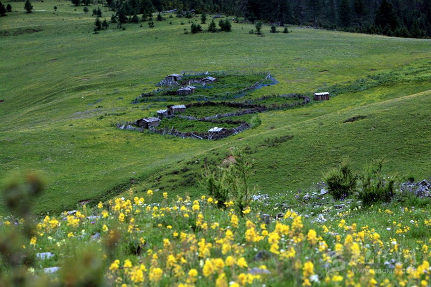 在雅江縣城西邊約60公里處,有一處山水秀麗的地方,由于遠(yuǎn)離公路,這地方一直“養(yǎng)在深閨人未識(shí)”。自然風(fēng)光格外秀麗姑且不說,只說那處地名為“郭崗頂”的、地形如“蓮花寶座”的山谷草壩上,緊靠一塊圓圓的叫做“太陽”、另一塊彎彎的叫做“月亮湖”的兩個(gè)湖泊旁,有一處龐大的古建筑群遺址赫然入目,讓人驚嘆不已。不遠(yuǎn)處,一座已有600多年歷史的“郭沙寺”,也好像是在守望著不遠(yuǎn)處這群讓人遺忘的古舊破敗的建筑。