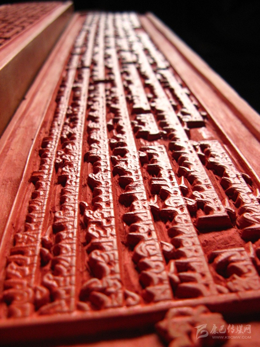 公元1730年2月3日,正式在倫珠頂開始進行校對和雕刻工作。為了提高印版的質量,土司規(guī)定實行三級審校制度,即書法家們負責對寫好的版文進行兩校,以便及時修改錯漏。然后經編審師們復審和終審后,方可交刻工雕刻。刻完后,編審師們在清樣上還要進行三校。版面改動較多的進行重刻,改動較少的進行補刻。規(guī)定的校次不準任意減少或改動。雕刻工作由噶瑪班珠和次白總負責。經過60多名書寫員、10名編審師、400余名刻工以及100多名雜工的艱苦勞動,浩繁的《甘珠爾》刻版工程于在公元1734年完成。印版所用經費,折成茶塊共計7622包(每包約20公斤)。