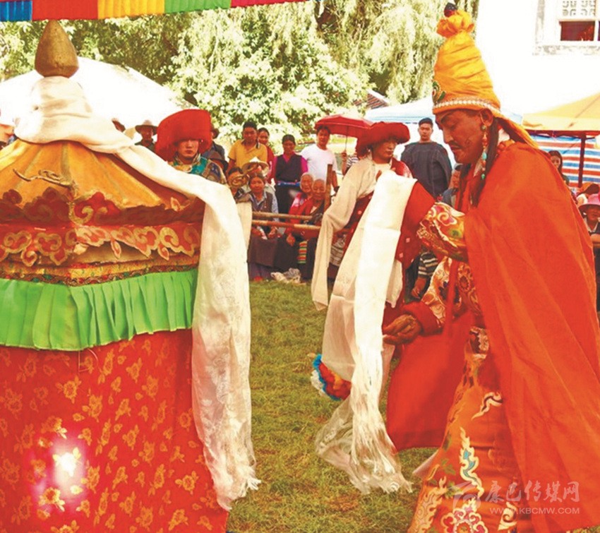 在康巴衛(wèi)視藏歷春晚節(jié)目中,我初次看到巴塘藏戲,原以為是寺廟舞蹈,卻在唱聲里聽出類似川劇的喉腔讓我覺得新奇,于是找些資料看看了巴塘藏戲介紹。藏戲的開山鼻祖唐東杰布。藏民歷來把他看作是創(chuàng)造藏戲的戲神和修建橋梁的鐵木工匠的“祖師”,是藏族人民心目中智慧、力量的化身。他將佛教經(jīng)典中的傳記同民間傳說、神話故事等內(nèi)容融在一起,創(chuàng)作出一種具有人物性格和舞蹈、唱腔相結(jié)合的表演藝術(shù),使過去那種單一的跳神舞逐漸地戲劇化,表現(xiàn)手段也不斷加強(qiáng),并從宗教儀式中分離出來,形成了藏劇藝術(shù)的雛形。