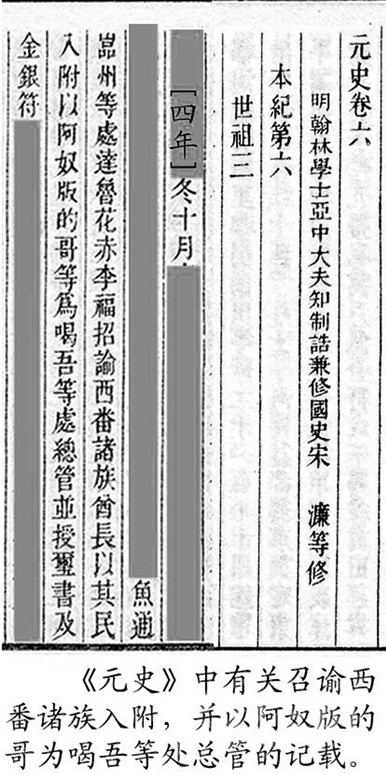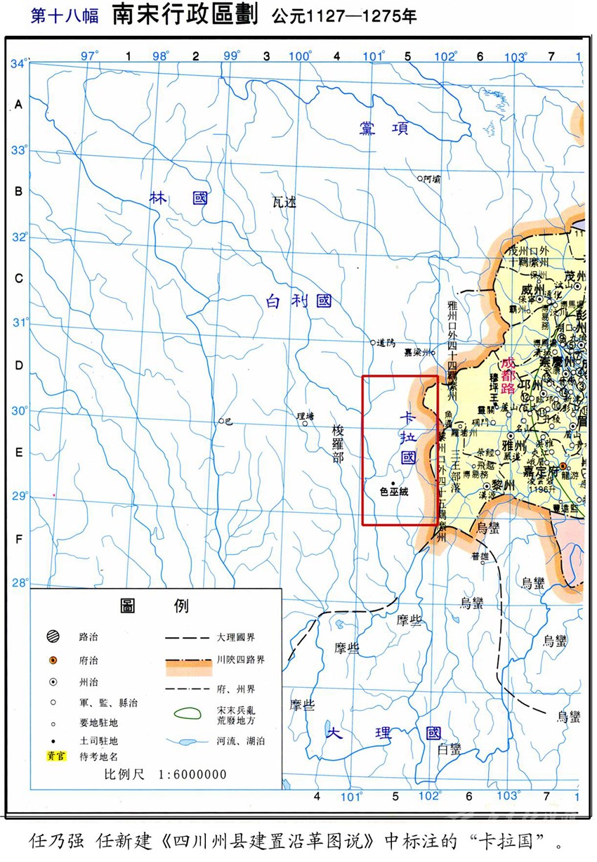 今屬康定縣的木雅,又分為上木雅和下木雅。下木雅的色烏絨地方,是木雅王曾住過的地方之一。民間又稱住在這里的王為“西吳甲布”(即“西吳王”),進而又附會出個“西吳國”來。從木雅貢嘎西邊那條叫色烏絨的山溝往南到打箭爐,正如傳說的那樣,早年一般要走三天。《元史》有“喝吾”的記載,“喝吾”“色烏”都是藏語的音譯,藏語“絨”為山溝之意,指的就是這個色烏絨。元世祖忽必烈征滇,沿大渡河、金沙江而進,得到沿途部落首領(lǐng)的大力支持。長河(大渡河)西的“西吳王”自然也不例外。所以在至元四年(公元1267年)“冬十月壬戌,魚通巖州等到處達魯花赤李福,招諭西番諸族酋長以其民入附,以阿奴版的哥等為喝吾等處總管,并授璽書及金銀符?!钡玫缴w有皇帝大?。ㄓ癍t)文書和金銀符,朝廷正式任命為“喝吾”總管的酋長(木雅王)阿奴版的哥,之后從色烏絨遷到打煎爐,不僅成為朝廷認可的“長河西土官”,還作了“四川分省右丞”。我們是否可以判定,“木雅王”遷爐的時間應在至元四年(公元1267年)之后?1267年距今740多年,以此推算,如前文所說:今天西爐(康定城)的歷史,大約為700年!再者,若從宋代的“卡拉國”算起,說“明正”歷四十二代,不能說沒有一點來頭。