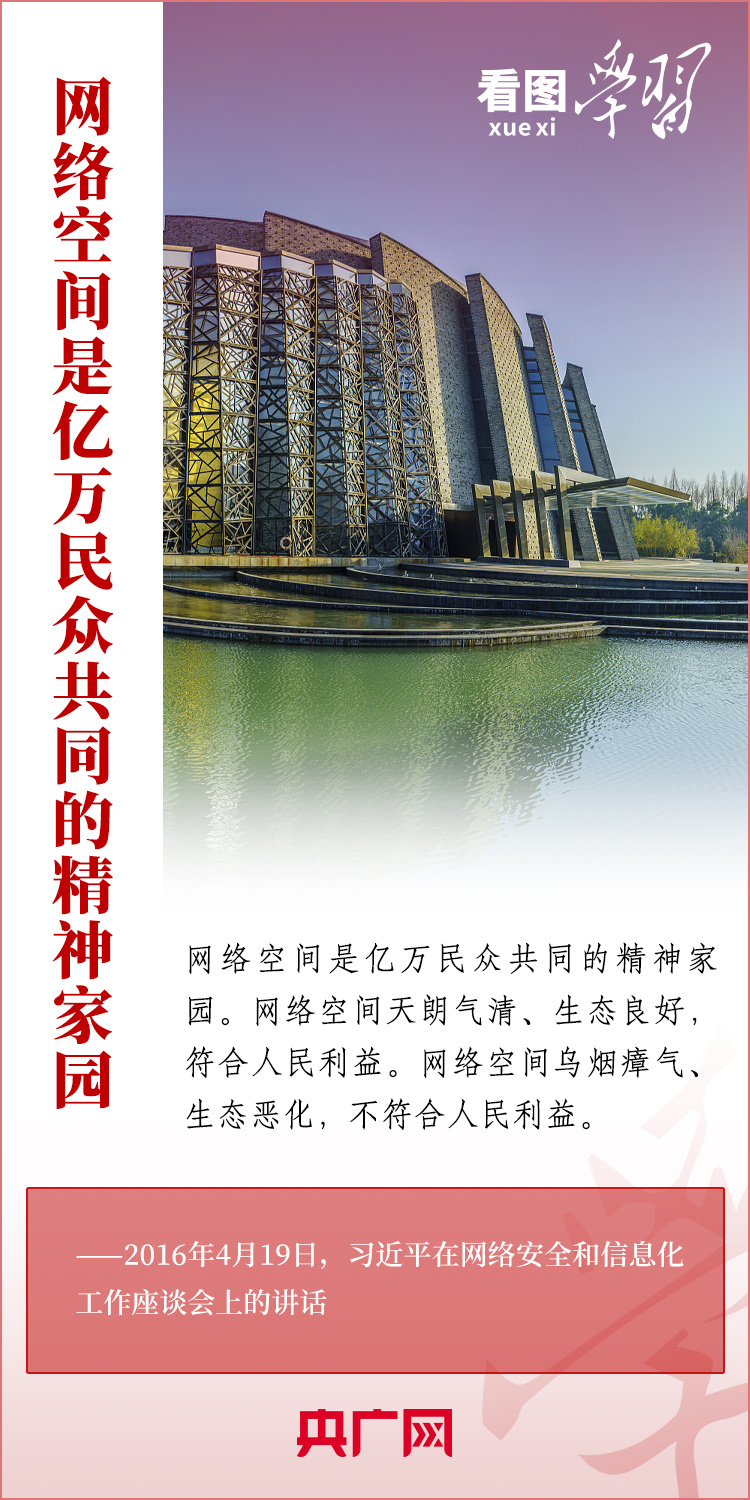 “堅持發(fā)展和治理相統(tǒng)一、網(wǎng)上和網(wǎng)下相融合,廣泛匯聚向上向善力量”“共建網(wǎng)上美好精神家園”。習近平總書記格外重視網(wǎng)絡空間這一億萬民眾共同精神家園的建設,圍繞網(wǎng)絡文化和網(wǎng)絡強國建設作出了一系列重要深刻論述。