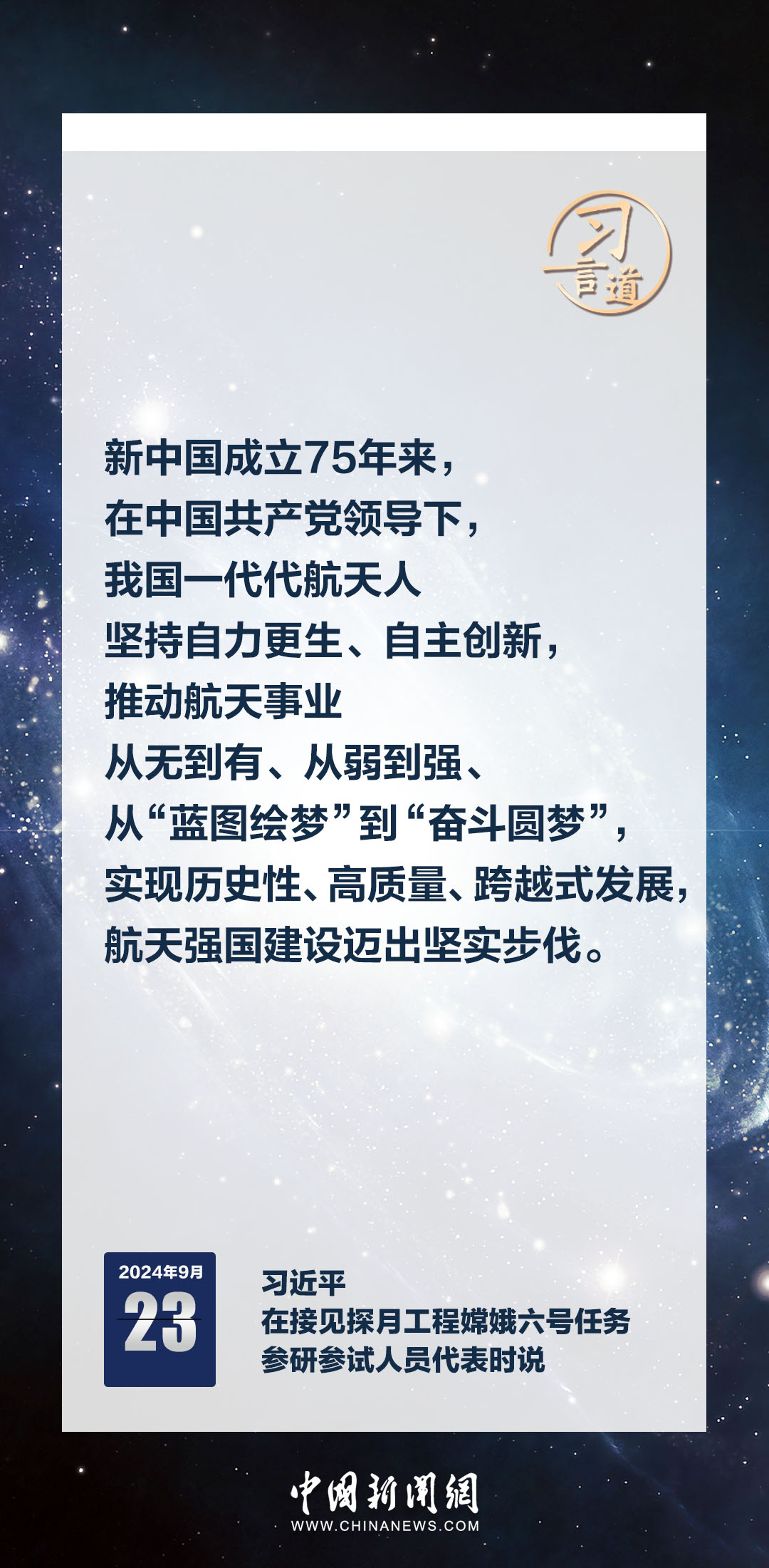 中共中央總書記、國家主席、中央軍委主席習(xí)近平23日在人民大會堂接見探月工程嫦娥六號任務(wù)參研參試人員代表時發(fā)表重要講話。習(xí)近平指出——