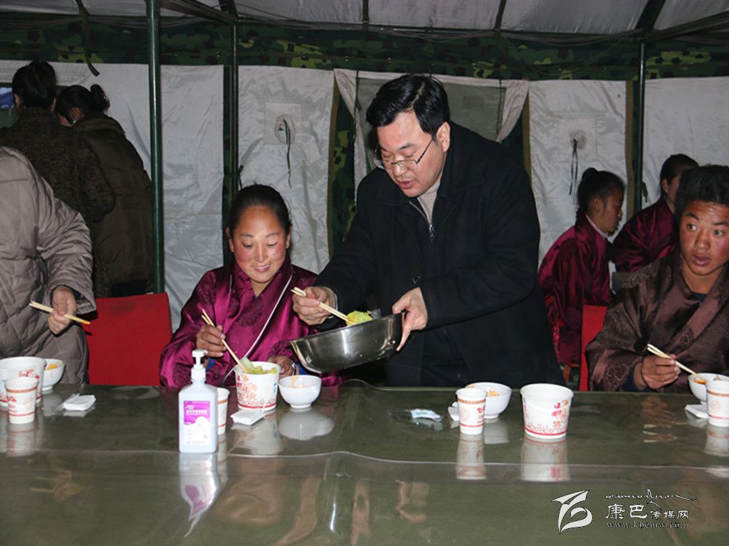 “這水餃做得很不錯”,州委書記胡昌升一邊吃著水餃,一邊對坐在身旁的學(xué)生澤仁巴姆說道,“明天就要回家過寒假了,你們家里也受了災(zāi),回家一定要多幫忙做事”。澤仁巴姆連連應(yīng)允,“回去我還要告訴父母地震時學(xué)校發(fā)生的一切,有這么多叔叔阿姨幫助我們”。
