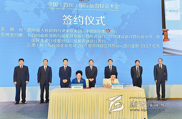 簽約儀式上,省政府與港中旅集團(tuán)、中國國旅集團(tuán)分別簽訂促進(jìn)旅游業(yè)發(fā)展戰(zhàn)略合作協(xié)議;省旅游局與國家開發(fā)銀行四川省分行、中國建設(shè)銀行四川省分行、中國民生銀行成都分行、成都農(nóng)商銀行,分別簽訂支持旅游業(yè)發(fā)展戰(zhàn)略合作協(xié)議;各市(州)與相關(guān)投資企業(yè)簽訂20個(gè)旅游項(xiàng)目合作協(xié)議,簽約金額393.7億元。