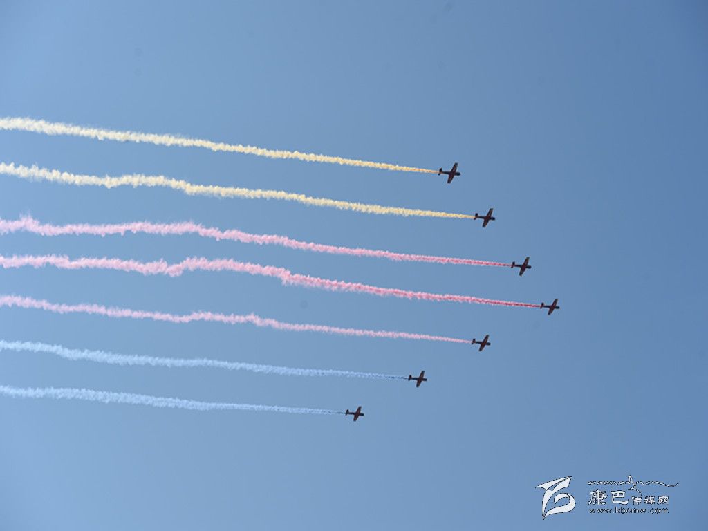 ?。返啦薀煛ⅲ傅啦薀?hellip;…絢麗濃艷的彩煙帶成為空中的“吸睛”亮點。