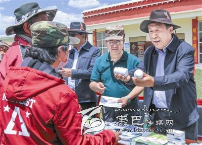 調(diào)研中,于康震一行還在色須鎮(zhèn)開展的包蟲病科技下鄉(xiāng)活動(dòng)現(xiàn)場(chǎng),向前來(lái)咨詢的農(nóng)牧民群眾發(fā)放宣傳資料和驅(qū)蟲藥品。他對(duì)群眾們說(shuō),今天我們來(lái)這里送知識(shí)、送物資、送藥品、送技術(shù),目的就是為了更好地防控包蟲病。包蟲病能否控制住,關(guān)鍵取決于廣大農(nóng)牧民群眾,大家如果能按照防控知識(shí)和技術(shù)去做,包蟲病防控工作就成功了一大半。