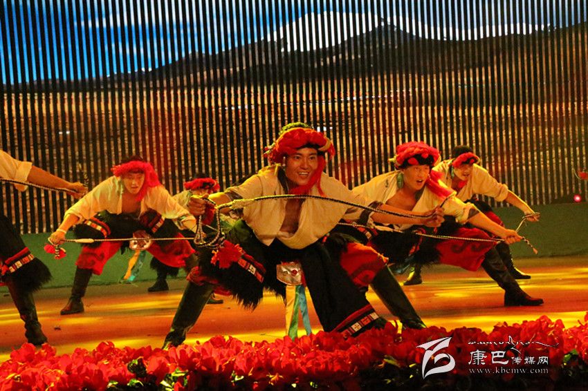 20點(diǎn)整,演出在民樂演奏《康定情歌》中拉開序幕。30名身著各色民族服飾的演員用管、弦、鼓、號(hào)、鈴等各類傳統(tǒng)樂器向大家重述了優(yōu)美動(dòng)人的康定情事。稍后的《鈸舞》、《踏鈴》和《康巴漢子》讓現(xiàn)場(chǎng)熱度直線飆升。取材于格薩爾說唱故事的《格薩爾禮贊》更讓現(xiàn)場(chǎng)觀眾震撼無(wú)比。最終,演出在歌曲《美麗的康巴我的家》中落下帷幕。在近80分鐘的表演中,演員們用歡騰的歌聲、飛揚(yáng)的舞步、火熱的激情,激蕩著在場(chǎng)觀眾的心緒,使現(xiàn)場(chǎng)響起一陣陣熱烈的掌聲。